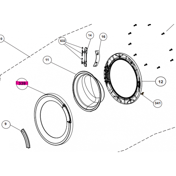 Pièce de rechange d'origine pour lave-linge. Ce cadre plastique (enjoliveur) assure la finition extérieure de votre porte et le maintien de l'ensemble du hublot.