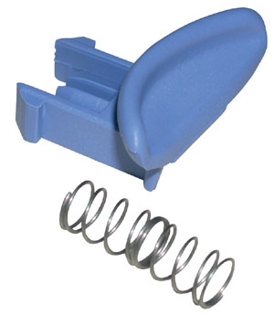 Petit bouton bleu qui permet d'ouvrir le bac à pastille de lavage.